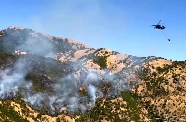 Hakkari'nin Şemdinli ilçesinde ormanlık alanda çıkan yangınla gayret için helikopter dayanaklı çalışma yürütülüyor. Gruplar...