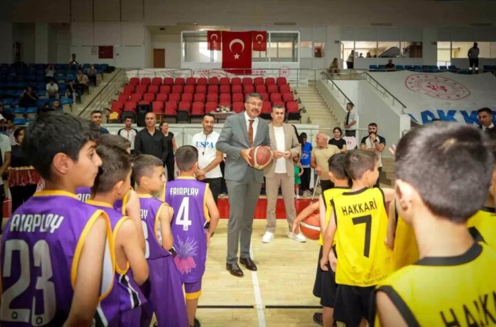 Hakkari Valisi Ali Çelik, 'Basketbol Teşvik Ligi' turnuvasında dereceye giren atletlere madalyalarını takdim etti....
