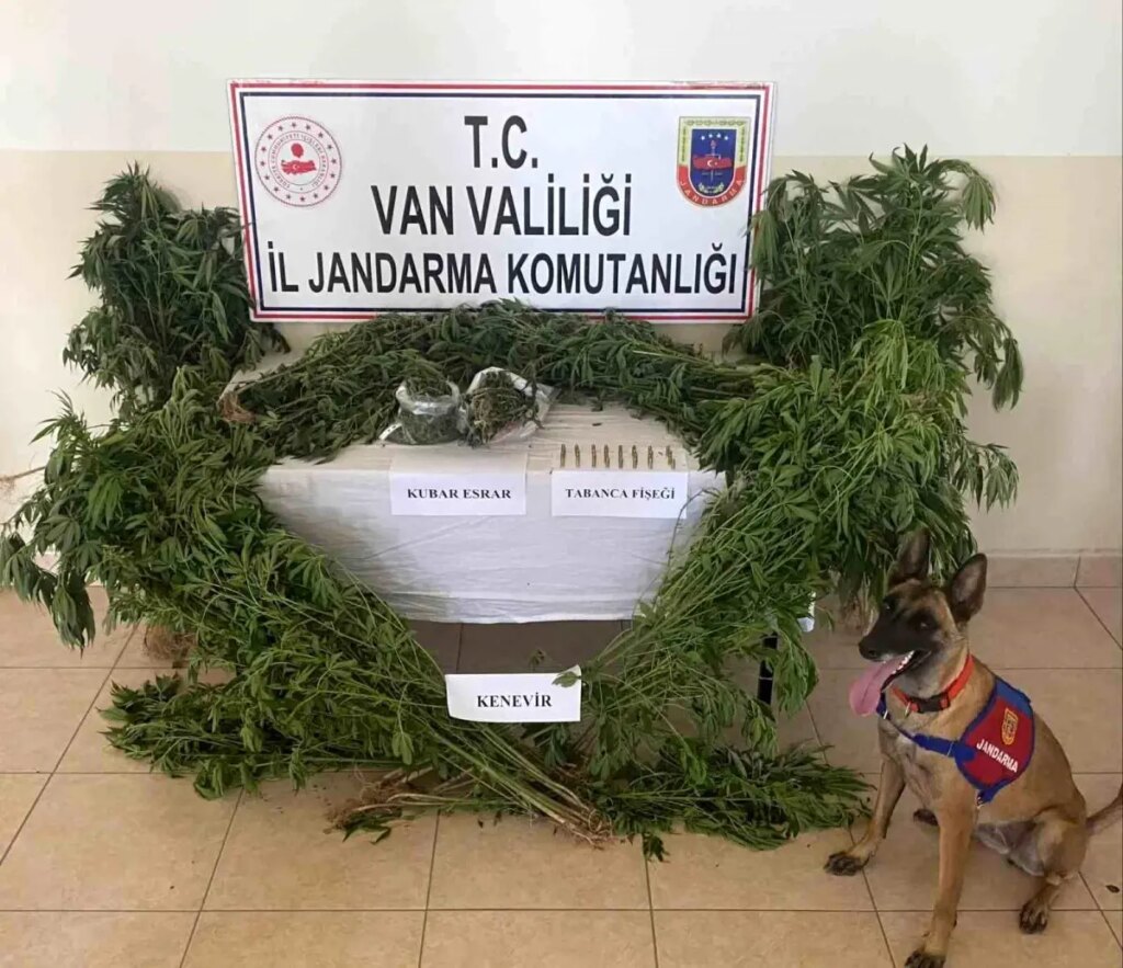 Van Valiliği’nden yapılan açıklamada, “Van Vilayet Jandarma Komutanlığı’na bağlı Narkotik Kabahatlerle Gayret uyuşturucu ve uyarıcı unsur imal ticareti yapanlara yönelik çalışmalarını aralıksız sürdürüyor. Bu çalışmalar çerçevesinde icra edilen arama faaliyetinde firari şahsın çatı ortasında ve bahçesinde özel alanlarda yetiştirilen 127 kök kenevir bitkisi, 288 gram kubar esrar hususu 4 gram kenevir tohumu ile 35 adet tabanca fişeği ele geçirildi. Güvenlik güçlerimiz tarafından narkotik hatalarıyla gayret kapsamında, kuşkulu şahısların yakalanmasına yönelik yürütülen çalışmalara kararlılıkla devam edilmektedir” denildi. – VAN